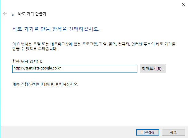 위 과정을 거치면 '구글 번역기'라고 적혀있는 바로가기가 만들어진 것을 알 수 있습니다. 해당 바로가기를 통해서 언제든 빠르게 구글 번역기 사이트를 이용할 수 있습니다.