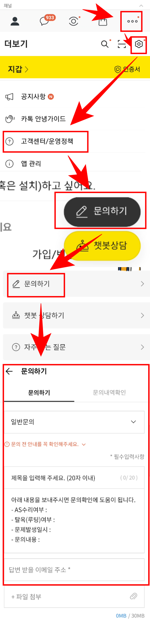 - 카카오톡에 있는 '문의하기' 기능을 이용하는 방법