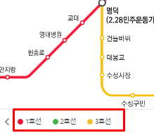 붉게 표시된 부분은 노선을 선택할 수 있는 버튼이기도 합니다. 원하는 지하철을 선택하면 지도에서 해당 지하철만 강조(레이어효과)되어 표시되게 됩니다. 활용하면 충분한 도움이 될 수 있겠죠.