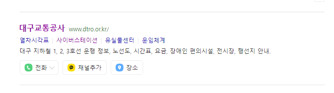 활용할 검색 포털 사이트는 다음(daum.net)입니다. 다음 검색에서 '대구 지하철 1호선'을 검색합니다. 검색 결과에서는 작은 영역으로 대구 지하철 1호선 노선도에 대한 내용을 확인할 수 있습니다. 아래 참고 사진을 볼까요.